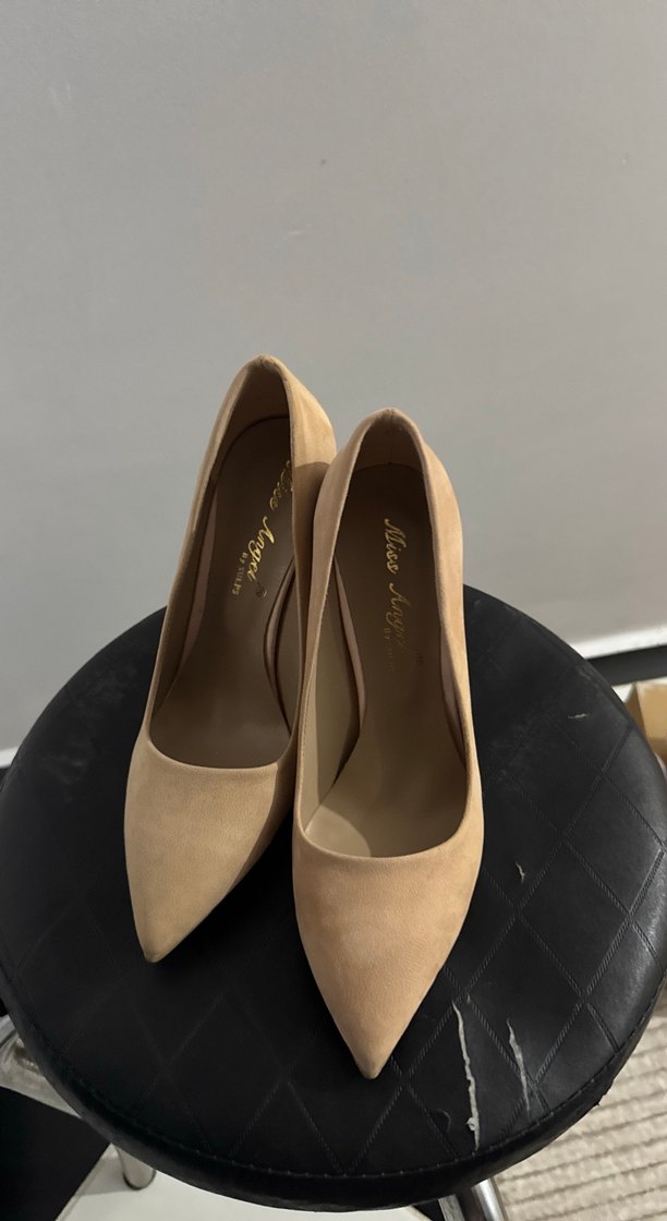 Bej süet stilettolar, modern klasik tasarımı ve sivri burunlu şıklığıyla ofis kullanımına uygun, zahmetsiz şıklık sunar. Sıfır