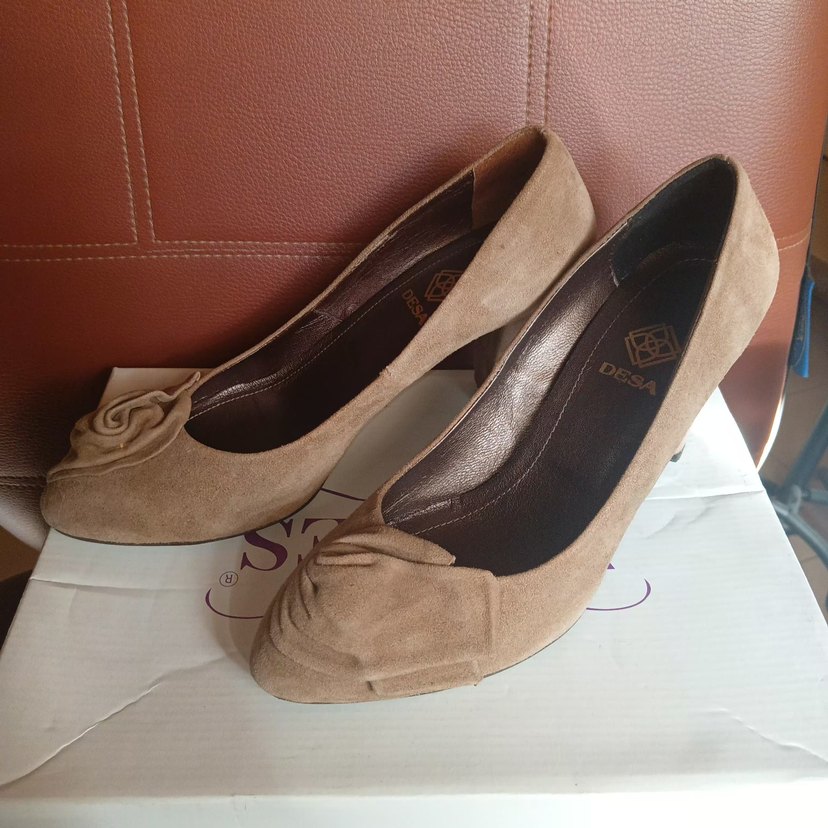 38 numara Desa marka Bej süet kadın klasik ayakkabılar, stiletto topuklu ve tokalı detaylıdır. Hafif desenli yapısıyla romantik akşamlar için uygundur. Kullanılmış üründür bir arızası yoktur.