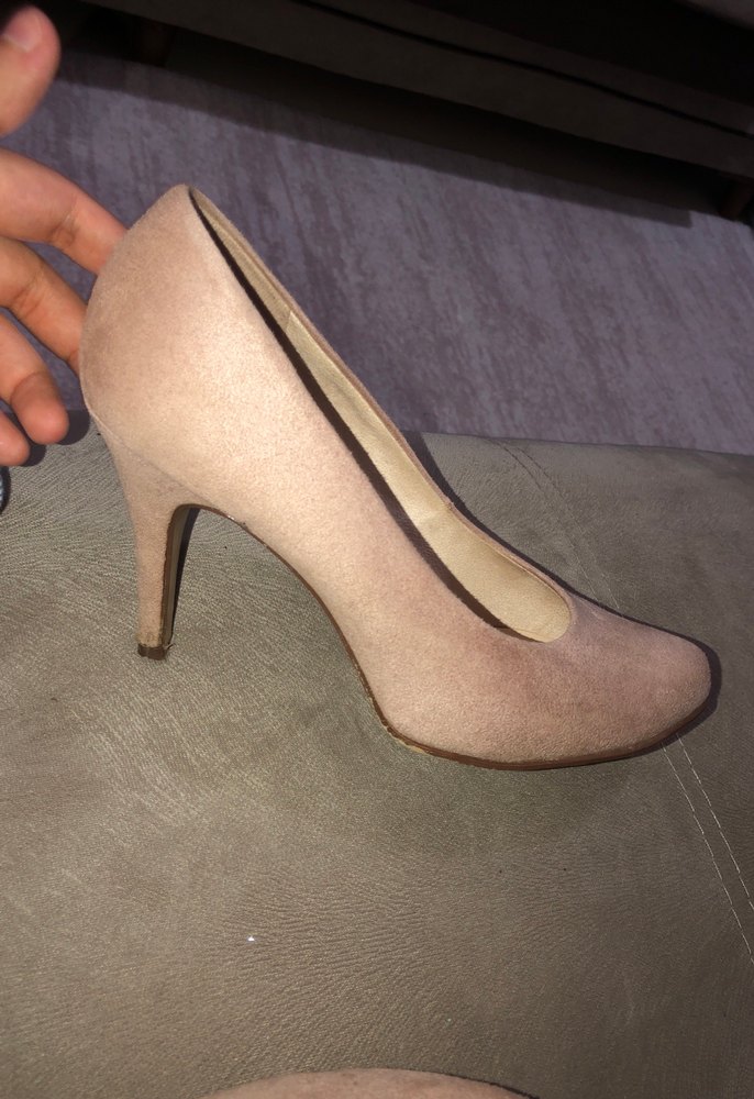 Graceland markalı bej süet platform topuklu ayakkabılar, stiletto topuklu ve minimalist tasarıma sahip, ofis için şık ve rahat bir seçenek.