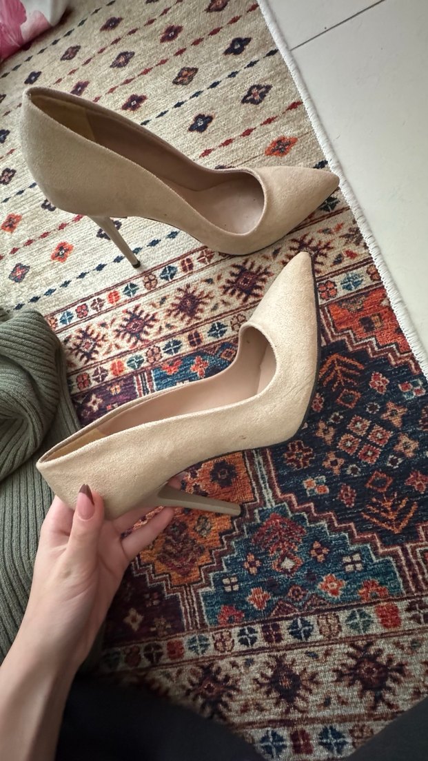 Bej Süet Stiletto Topuklu Kadın Ayakkabı