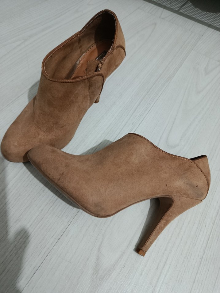 Bej süet malzemeden stiletto topuklu kadın botları, tokalı detaylıdır. Minimalist ve çağdaş tarzda, günlük kullanıma uygundur. Desensiz ve trend görünümlüdür. Vintage severler için mükemmel bir süet ayakkabı.Fiyatı uygun tutuyorum alıcısına şimdiden hayırlı olsun.