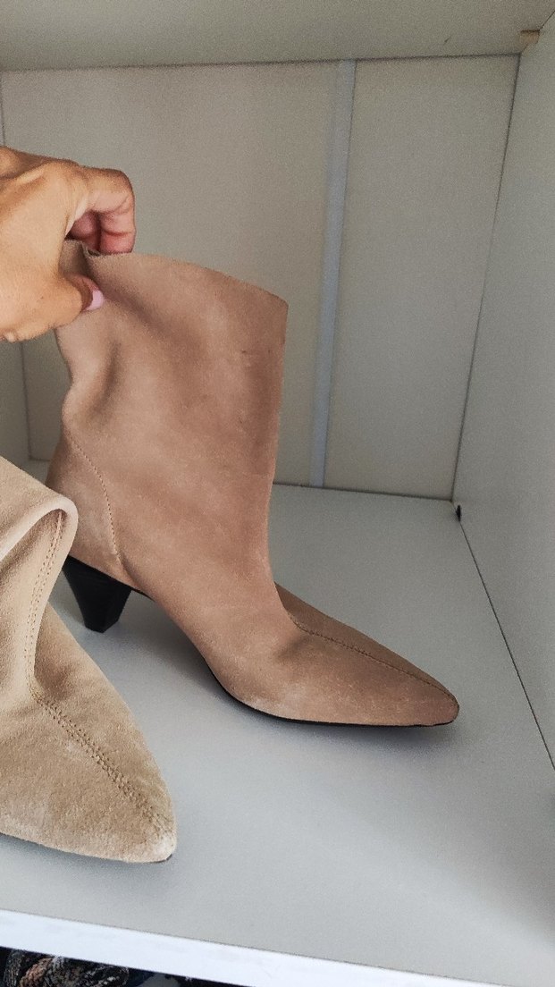 Bej süet kadife, stiletto topuklu kadın bot, desen içermeyen şık tasarımıyla günlük kullanıma uygun rahat ve zarif bir modeldir. o kadar severek aldimki.uzulerek.buraya koyuyorum .. 1 numara küçük almışım o kadar güzel ki inanamazsiniz... giymeden aşk.yasiyorum... her Zaraya gidişimde bakarım aynısını uretirlermi diye