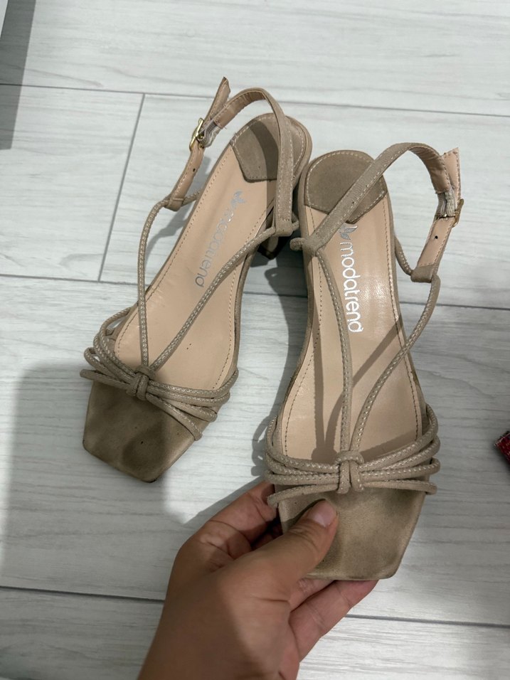 Bej Süet Stiletto Topuklu Kadın Sandalet