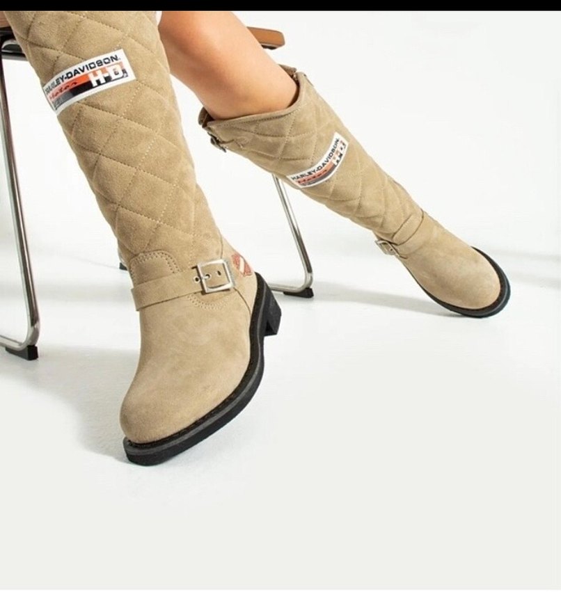 Bej Süet Tokalı Biker Dizüstü Kadın Çizme