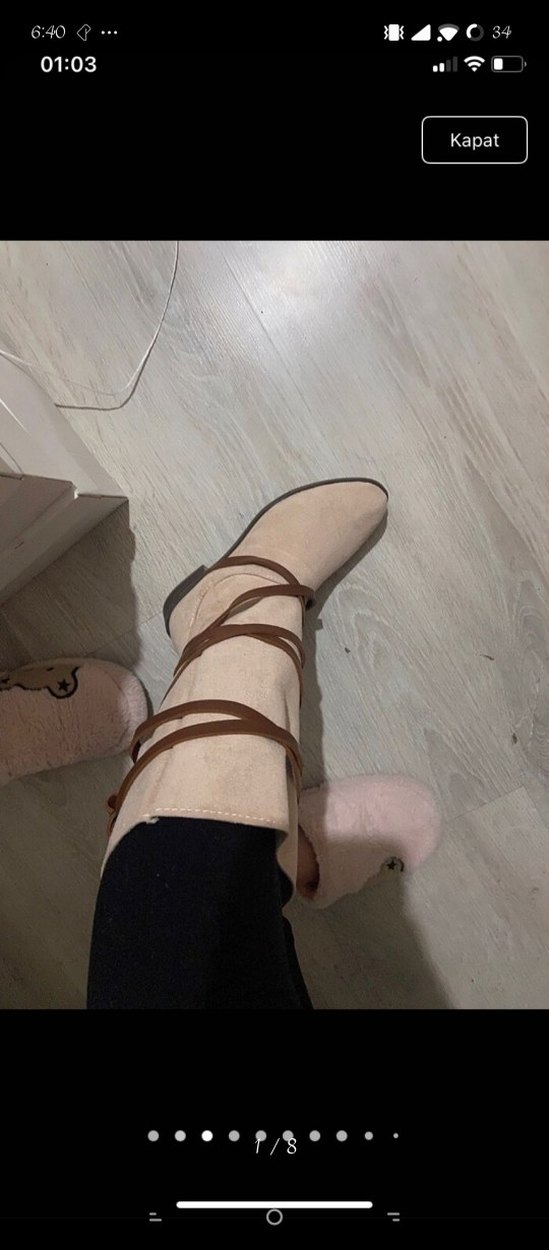 Bej Süet Tokalı hakiki dana Kadın Bot