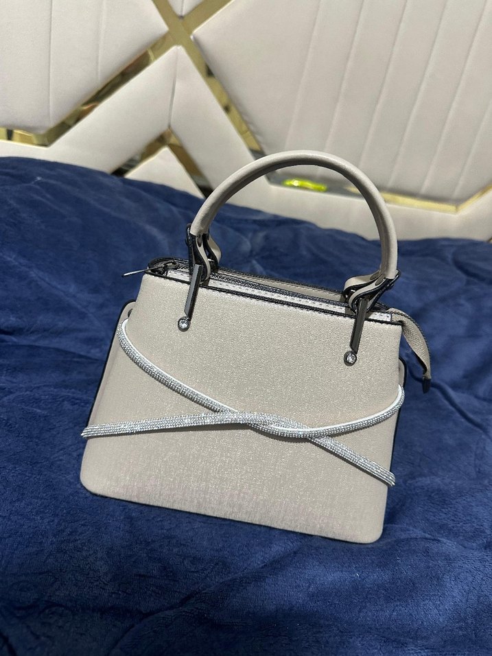 bej süet malzemeden yapılmış, tokalı, minimalist ve çağdaş tarzda, günlük kullanıma uygun kadın çantası. Kulp ve ince çapraz askı bulunur.
