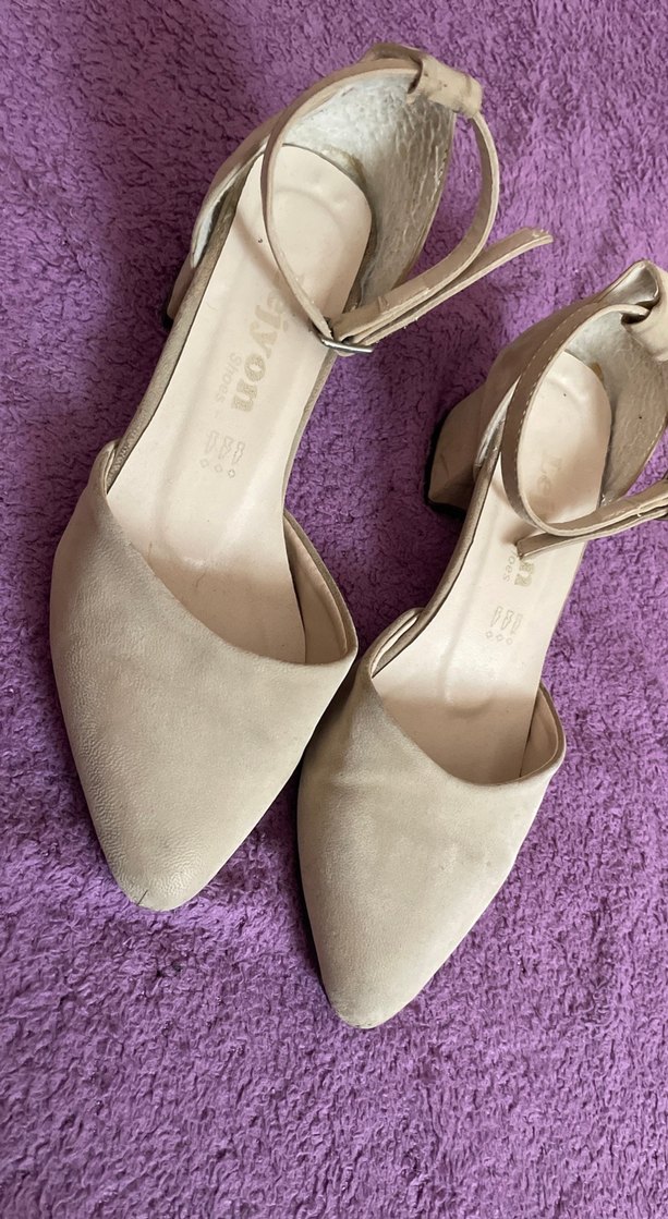 Bej Süet Tokalı Kadın Topuklu Ayakkabı