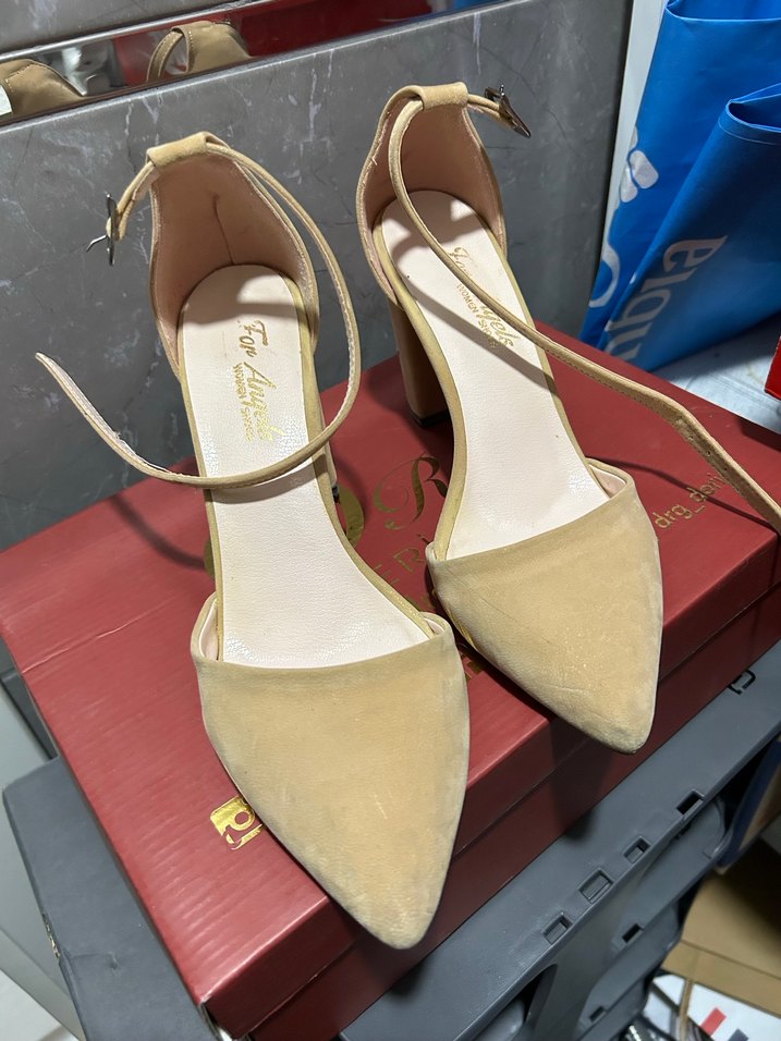Bej Süet Tokalı Topuklu Kadın Ayakkabı