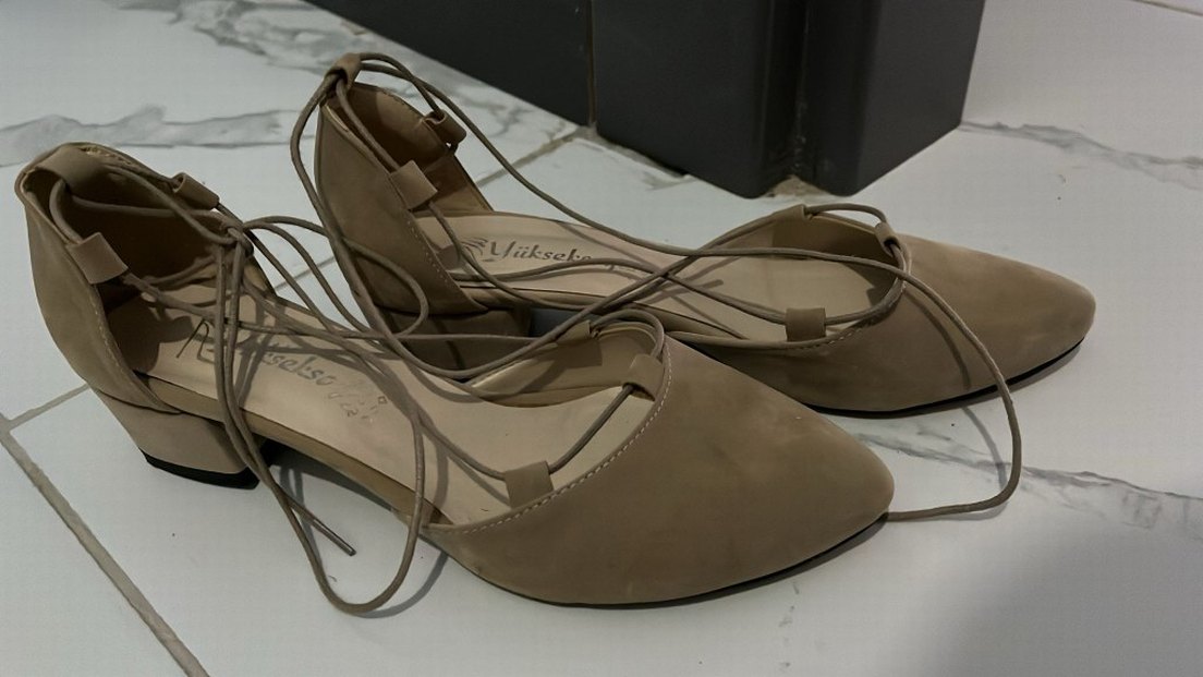 Bej Süet Topuklu Kadın Ayakkabısı