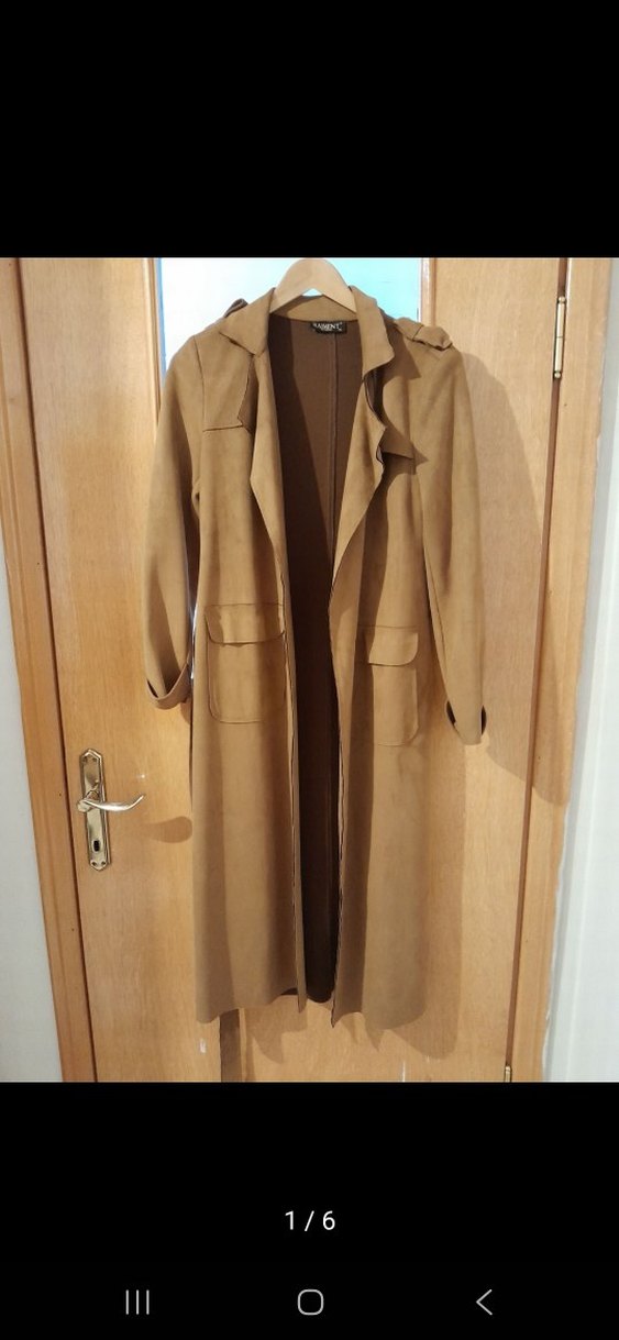 Bej süet uzun kadın trençkot, kesik yaka ve kemerli bel ile regular fit sağlar. Uzun kollu, desen içermeyen, Paris sokak modasına uygun günlük kullanıma uygun bir modeldir.
