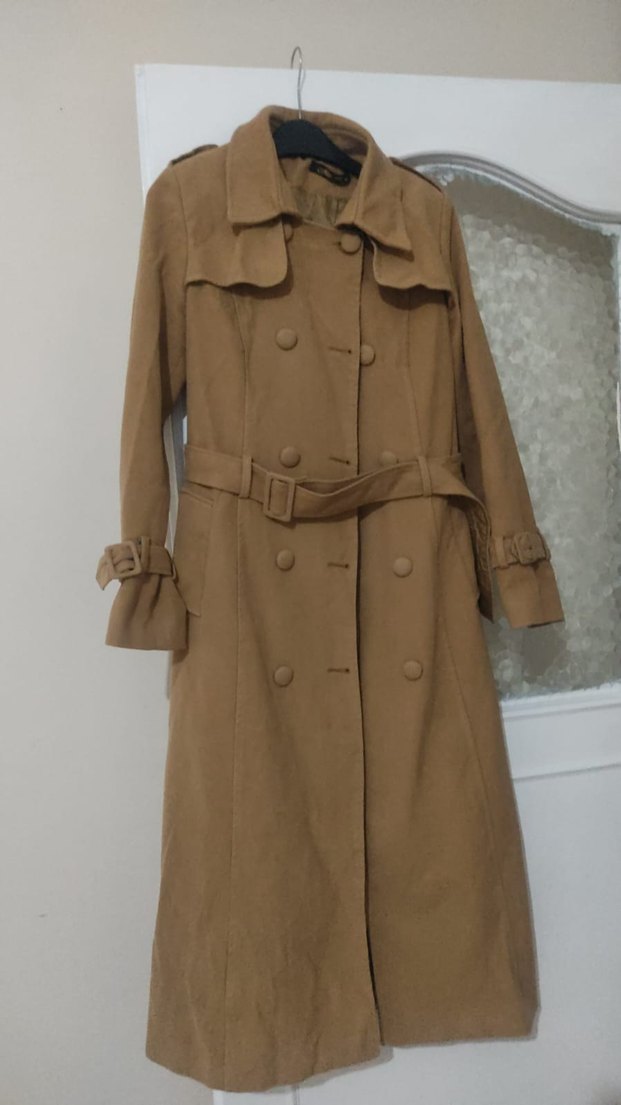 Bej Süet Uzun Kemerli Kadın Trençkot