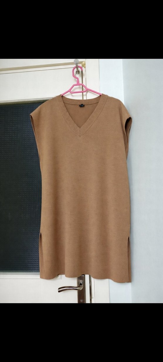 Bej Süet V Yaka Kolsuz Kadın Süveter DeFacto