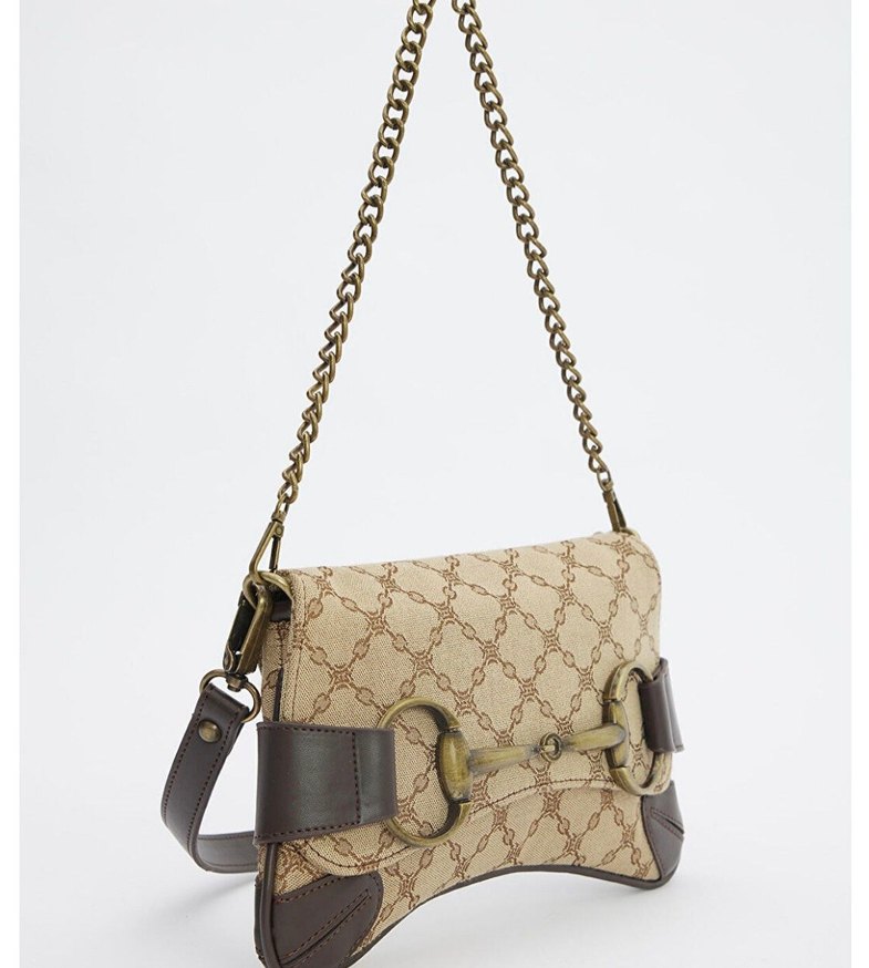 Bej Süet Zincir Detaylı Kadın Çanta