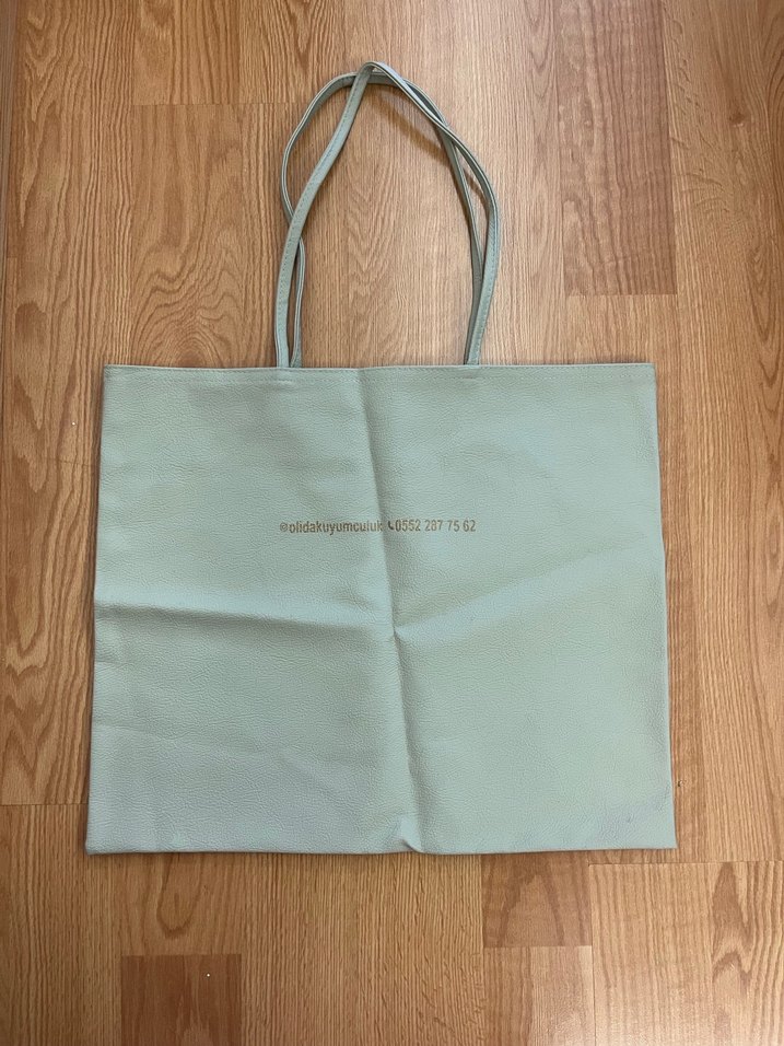 Bej suni deri kumaştan, desen içermeyen, uzun saplı çanta Minimalist ve çağdaş tarzıyla günlük kullanıma uygundur. En 49 cm boy 40 cm.