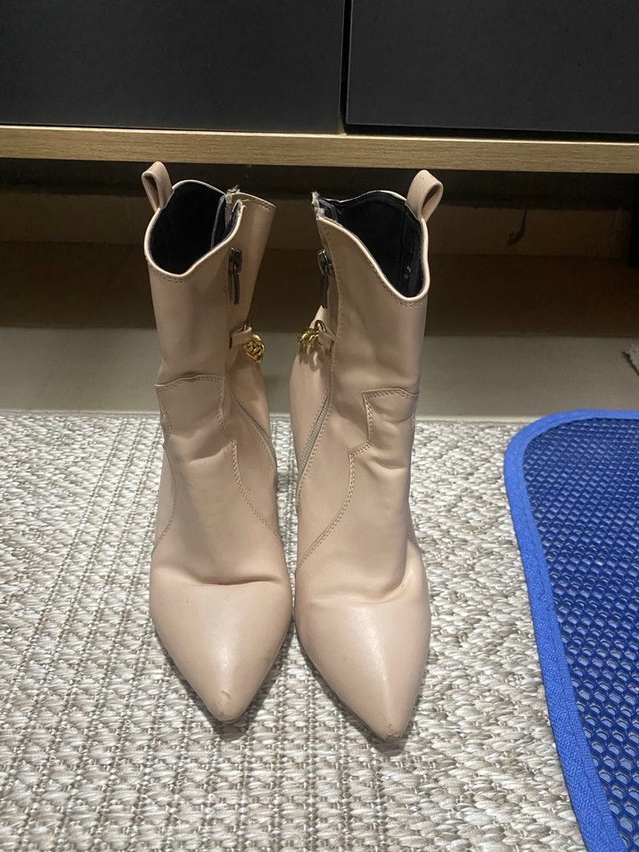 Bej suni Deri Stiletto Topuklu Kadın Bot