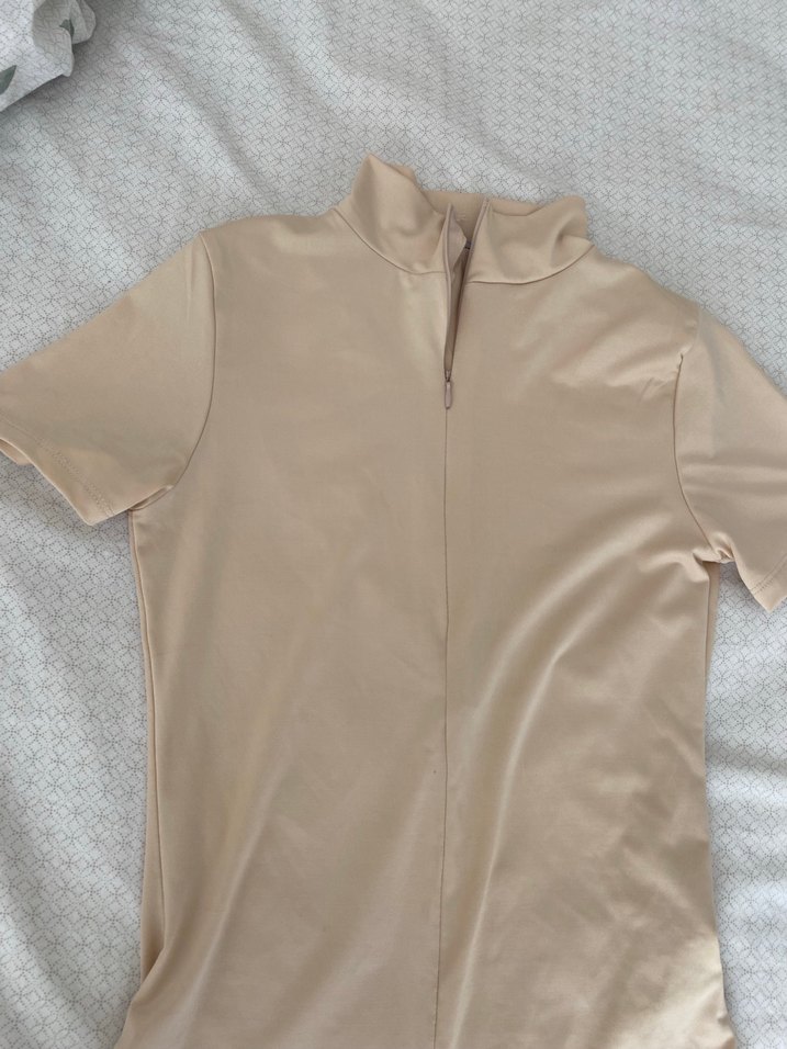 Bej renkte, yüksek yakalı, kısa kollu bodysuit birkaç kez kullanıldı temiz defo yok