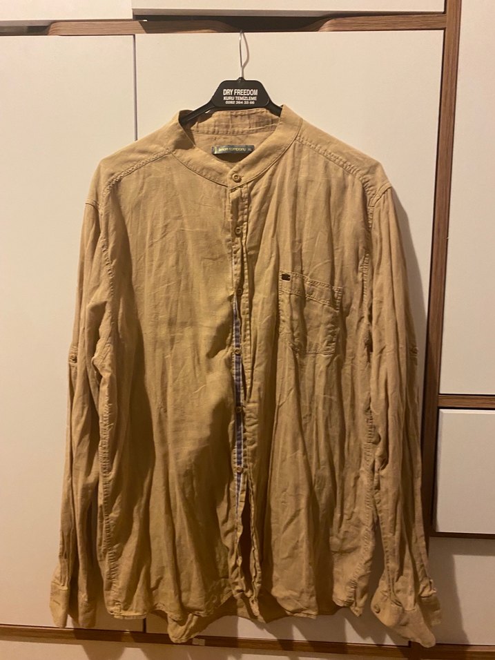 Limon Company Bej/taba renk xl hakim yaka pamuklu erkek gömlek