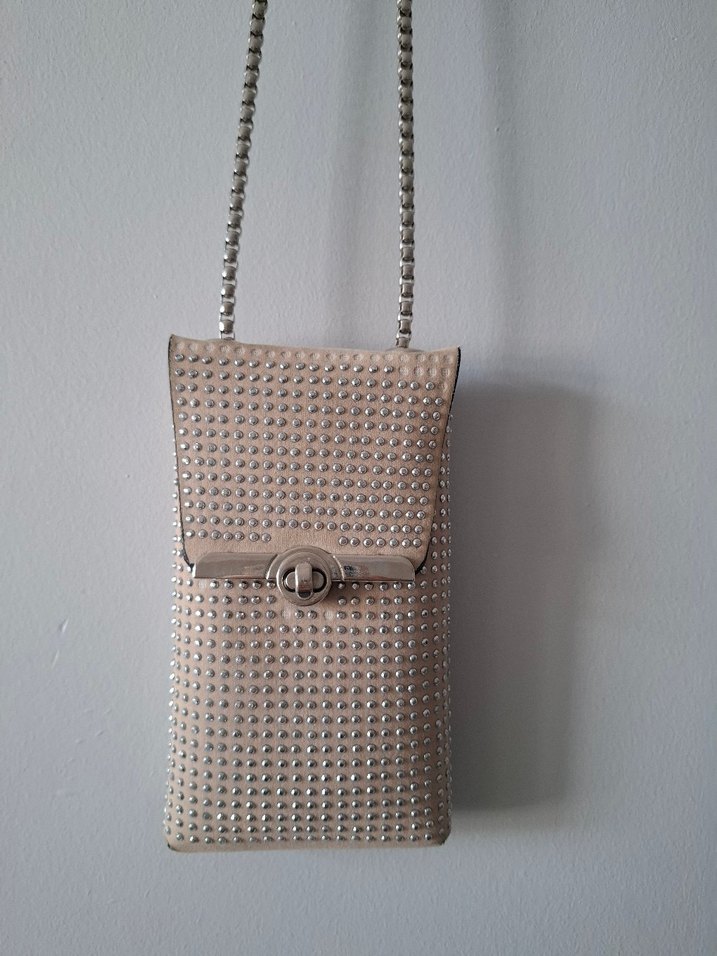 Bej taşlı çanta