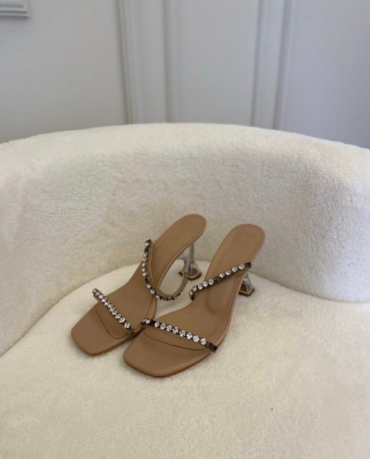Bej renkli, taşlı ince topuklu kadın akşam ayakkabısı. Parlak yılan desenli ve rahat kauçuk malzemeden yapılmıştır. Günlük kullanıma uygun, çağdaş minimalist tarzda. markası belirsz