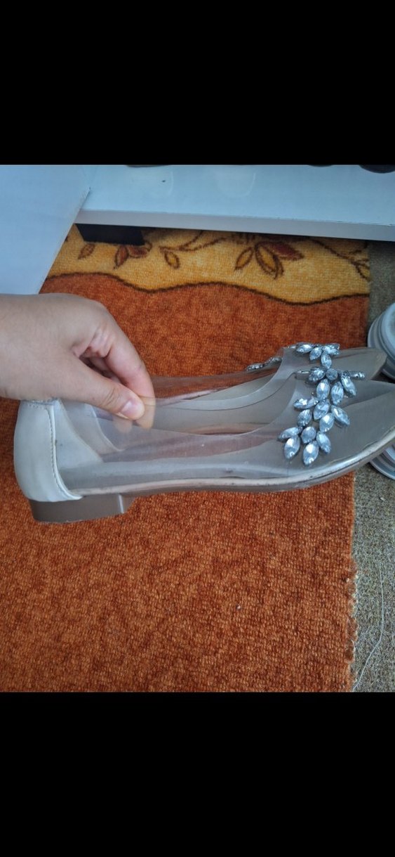 Bej renk, şeffaf yan detaylı, taş süslemeli kadın stiletto. Kauçuk tabanlı, minimal bohem tarzına uygun.