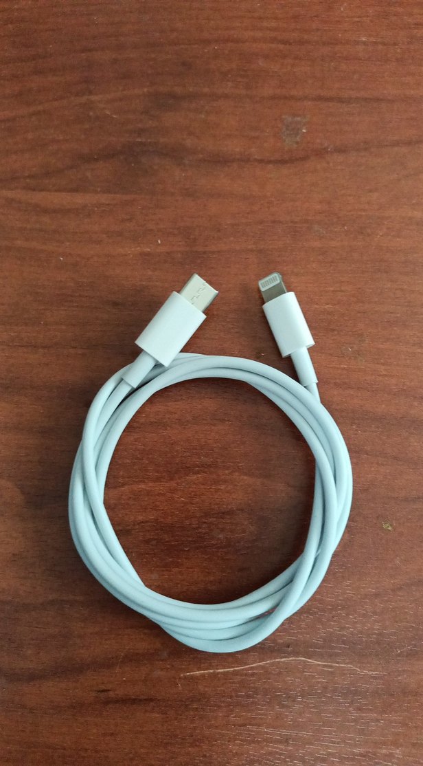 Mikro USB ve Lightning uçlu bej telefon şarj kablosu, farklı cihazlar için uygun.