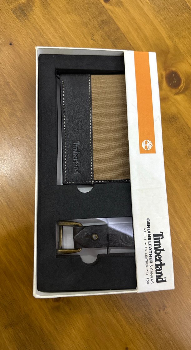 Bej Timberland Baskılı Cüzdan ve anahtar