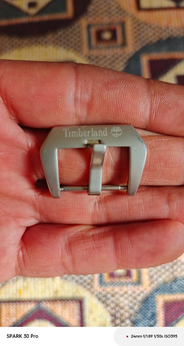 Bej renkte Timberland erkek saat tokası, sade ve işlevsel tasarımıyla minimalist stillere uygundur. Üzerinde Timberland logosu bulunur. ⌚