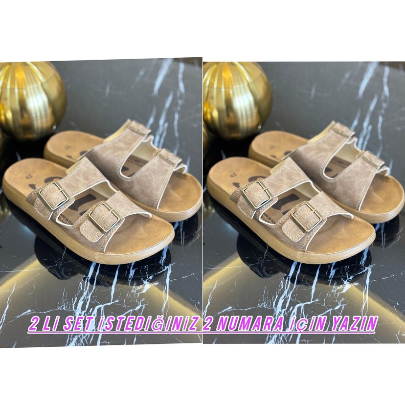 Bej Tokalı 2 Li Set Erkek Çift Toka Terlik(İstediğin 2 Numara sö