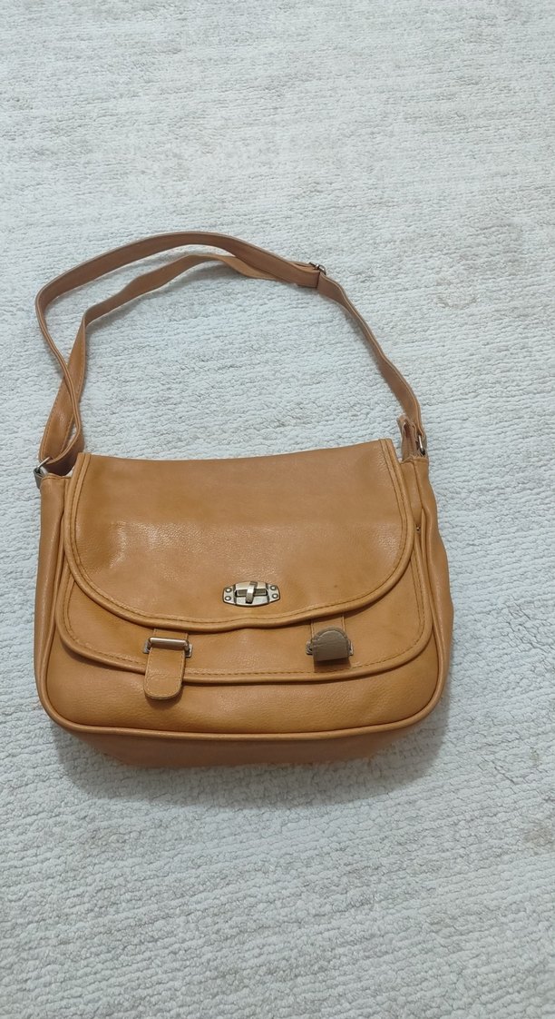 Bej renkli, tokalı deri kadın çanta. Minimalist ve desensiz tasarımıyla sokak modasına ve günlük kullanıma ve üniversite için uygundur