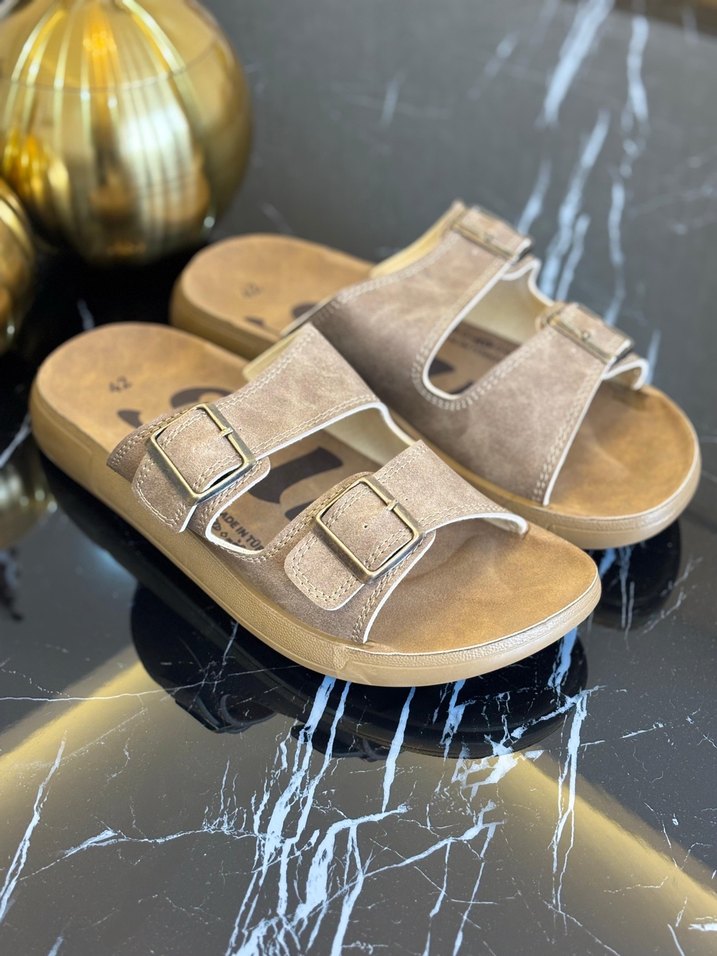 Bej Tokalı Erkek Çift Toka Terlik - Görsel 1