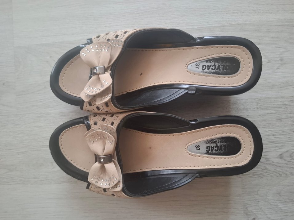 37 numara Bej renkte, tokalı ve baskılı desenli kadın dolgu topuk terlikler. Kauçuk malzemeden üretilmiş, günlük kullanıma uygun modaya uygun tasarım.