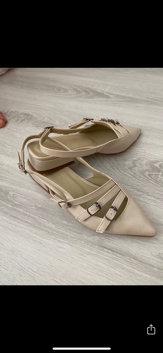 Bej renkte, tokalı kayışlara ve kalın topuğa sahip kadın ayakkabıları. Yumuşak ve pastel tonlu kauçuk malzemeden üretilmiştir, günlük kullanıma uygundur.