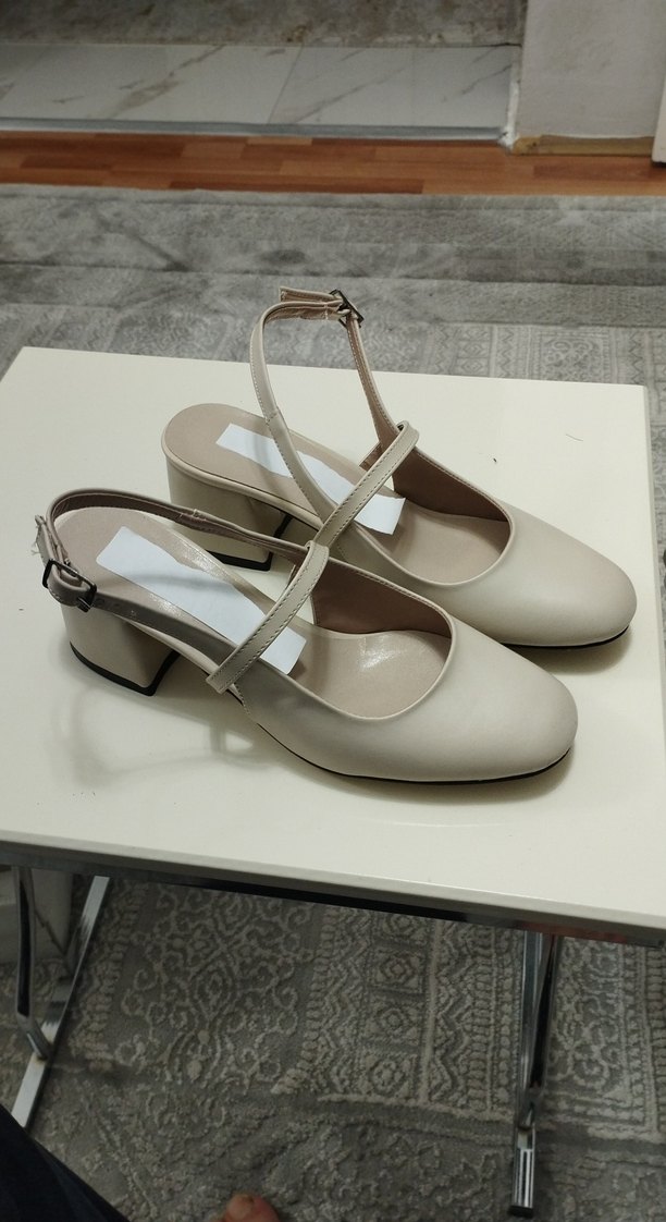 Bej renkte, tokalı kayışlı, blok topuklu kadın ayakkabısı. Yumuşak kauçuk malzemeden yapılmış, klasik ve çağdaş bir tasarıma sahip. Günlük kullanım için uygundur.