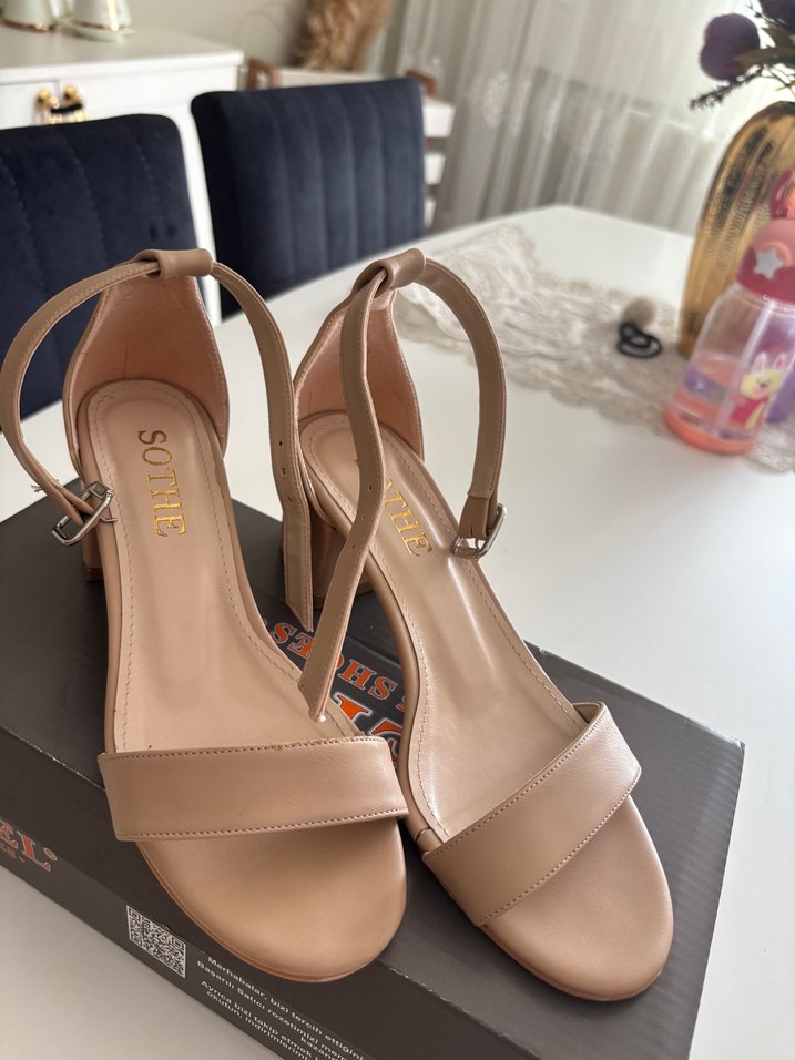 Bej Tokalı Kadın Topuklu Sandalet