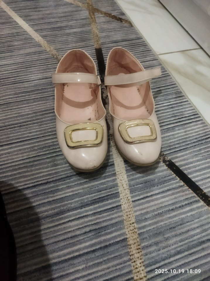 Bej renkte, tokalı bantlı kız babetleri, modern klasik tarzda ve kauçuk malzemeden üretilmiştir. Düz ve şık görünüme sahiptir.