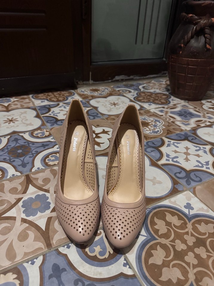 Bej Tokalı Stiletto Topuklu Kadın Ayakkabı