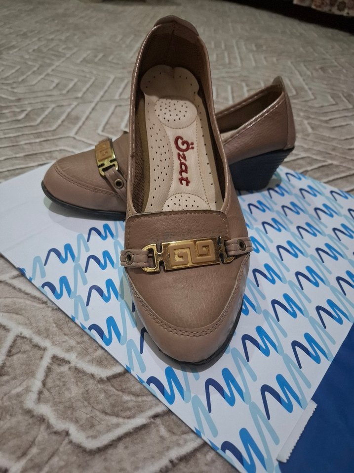 Bej renkli, tokalı kadın babet. Dolgu topuklu Marka Ozat.