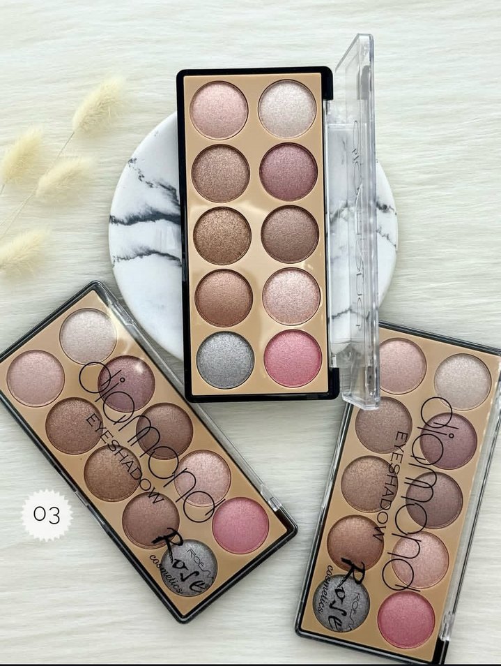 10'lu bej ve pembe tonlarda, mat ve ışıltılı karışık göz farı paleti. 03 numaralı renkte, çeşitli makyajlar için uygundur.