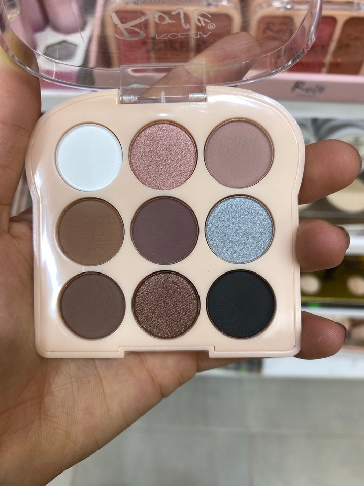 Bej tonlarında, mat ve ışıltılı dokuda 9 farklı far içeren palet.