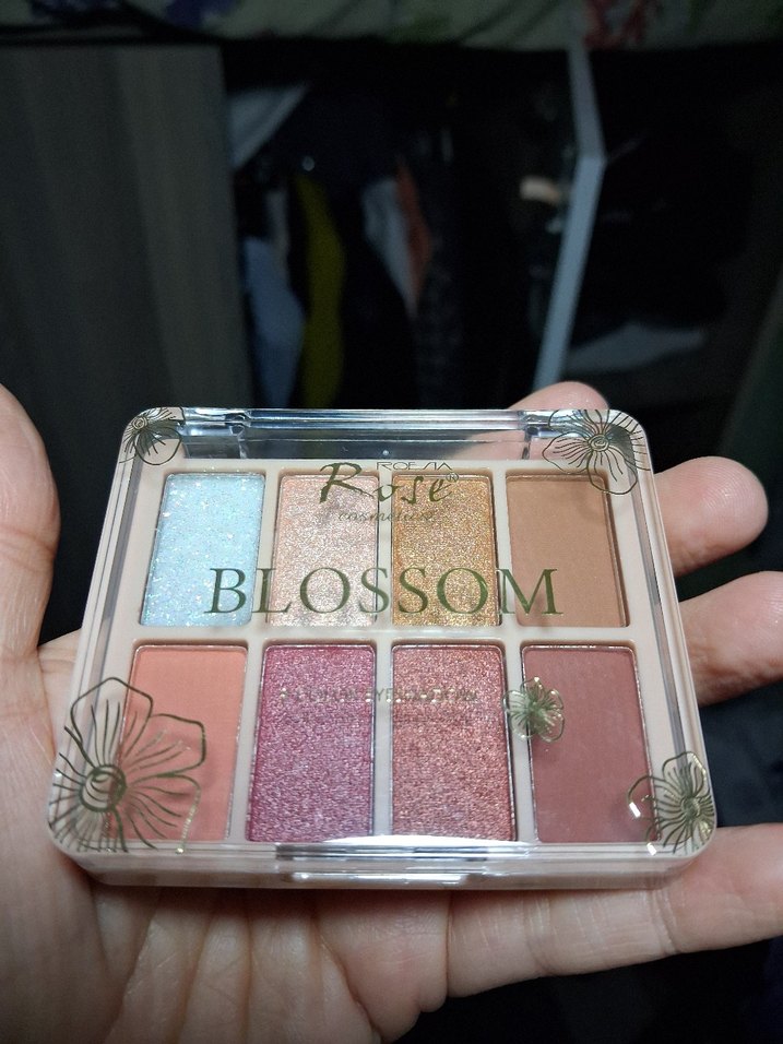 Blossom göz farı paleti, mat ve ışıltılı finisajlarla bej ve canlı tonlar sunar.
