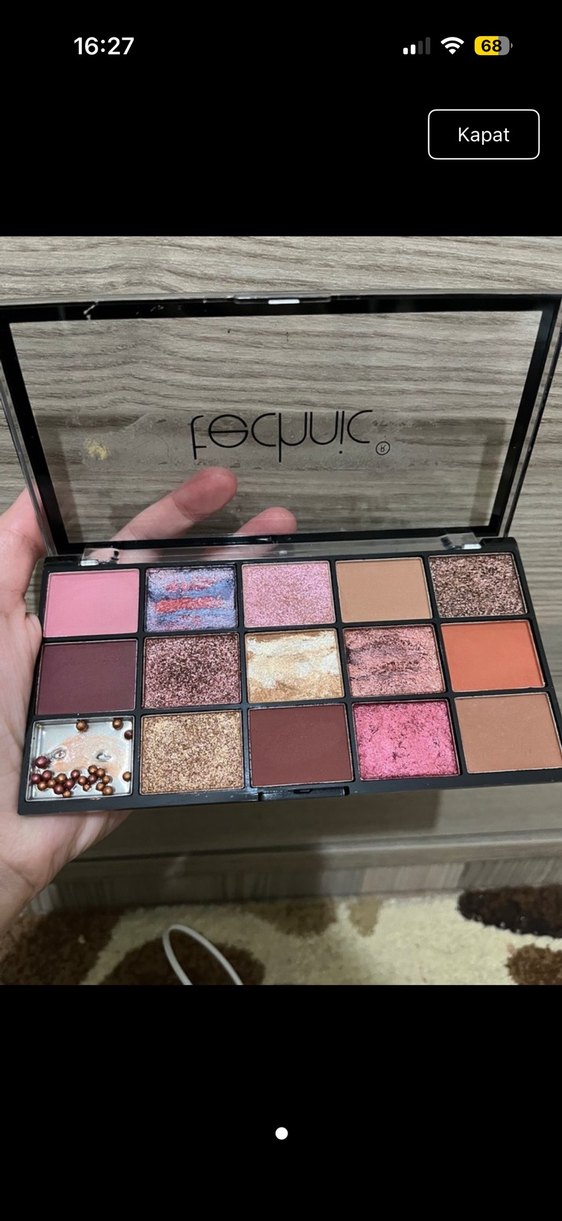 Bej, pembe, kahve ve simli tonlar içeren 15 renkten oluşan çok renkli göz farı paleti, mat ve parlak seçenekler sunar.