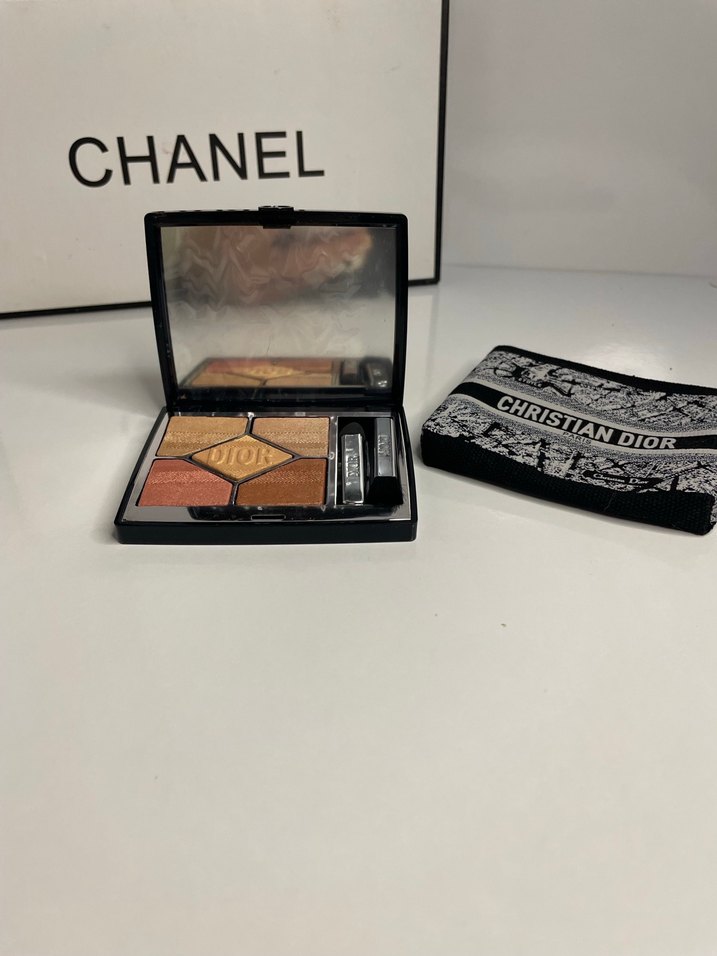 Dior marka göz farı paleti, bej tonlarında mat ve parlak renkler içerir. Aynası, aplikatörleri ve kumaş kılıfı ile birlikte gelir.