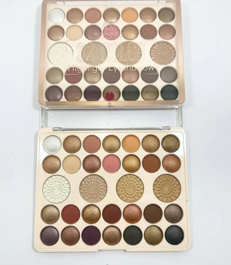 Bu far paleti, mat ve ışıltılı bej ile açık tonlarda çeşitli renkler sunar, farklı makyaj stilleri için uygundur.