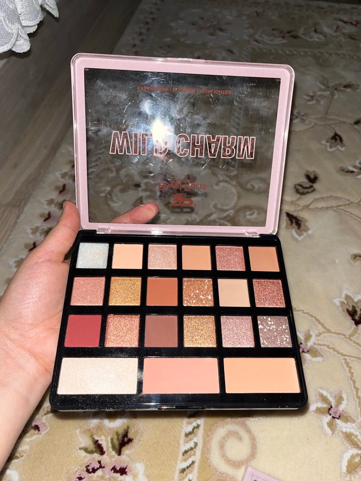 Bu far paleti, mat ve ışıltılı bitişlere sahip açık bej ve sıcak tonlarda çeşitli renkler sunar. Farklı makyaj stilleri için uygundur.