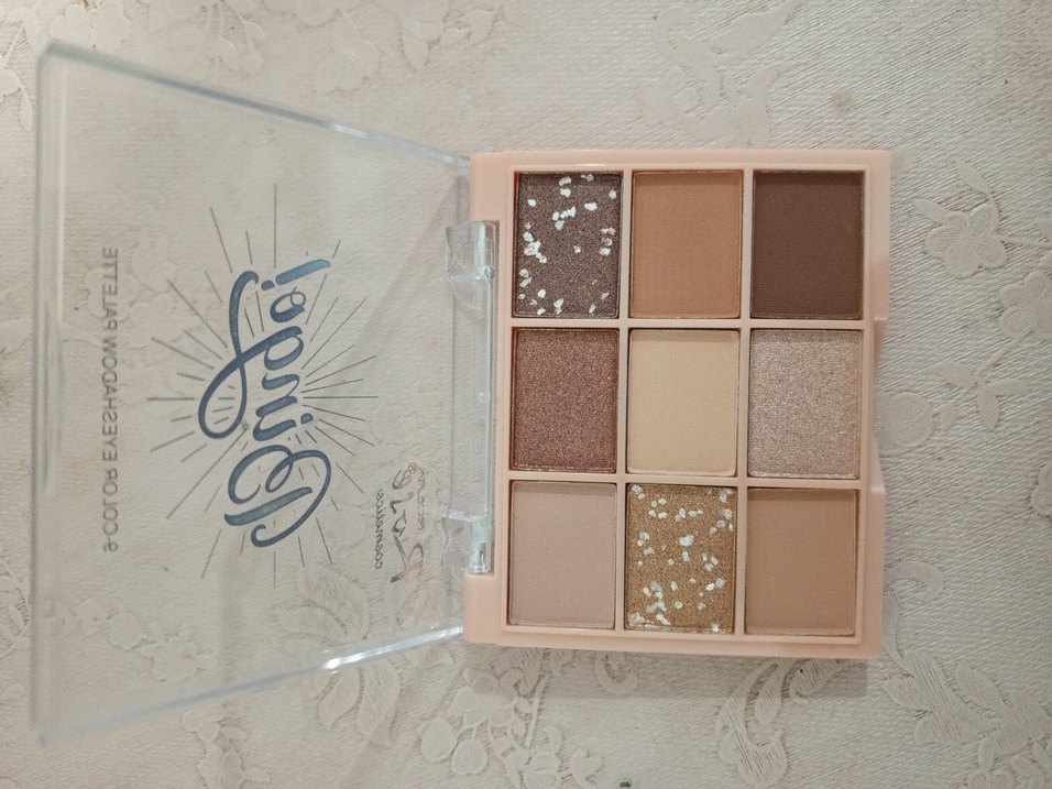 Mat ve simli tonlarıyla açık bej far paleti, çeşitli göz makyajları için uygundur.