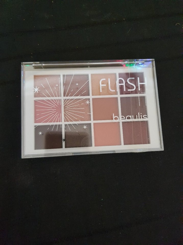 FLASH göz farı paleti, açık bej tonlarında çeşitli renkler sunar. Kompakt kutuda farklı far seçenekleri bulunur.