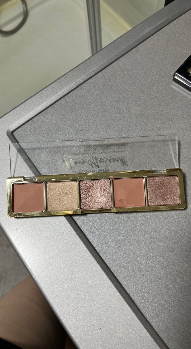 Bej ve açık tonlarda, mat ve ışıltılı beş renkten oluşan göz farı paleti.
