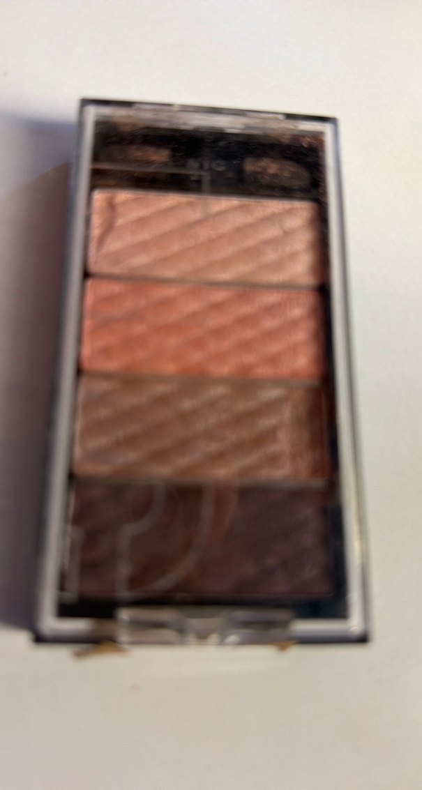 Dört bej ve kahverengi tonlu, dokulu yüzeye sahip göz farı paleti, doğal ve koyu makyajlar için uygundur.