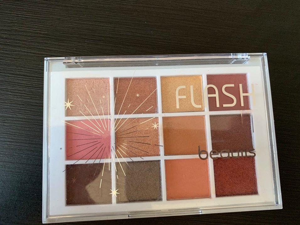 Mat ve ışıltılı bitişlere sahip açık bej ve sıcak tonlarda göz farı paleti, çeşitli makyaj stilleri için uygundur.