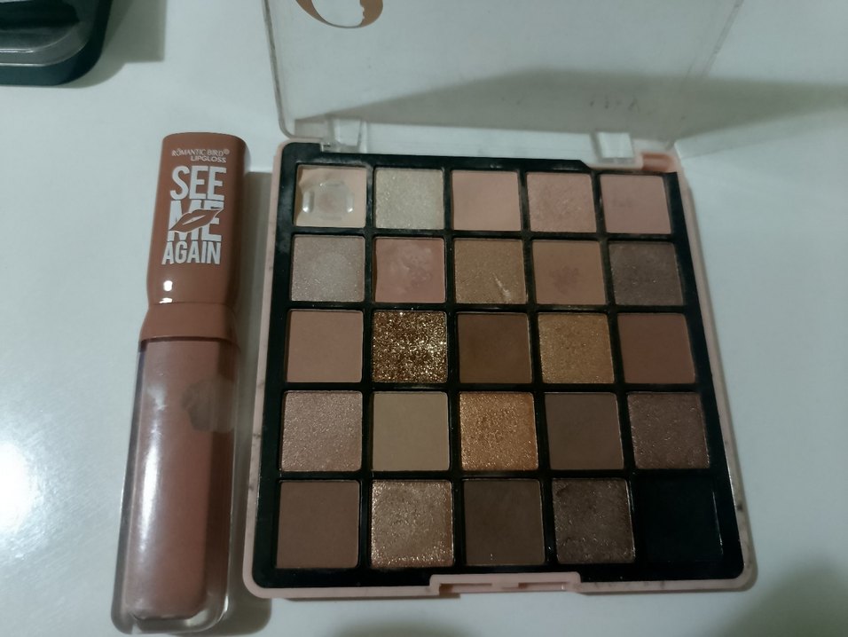 Bej Tonlarda Göz Farı Paleti ve lipgloss